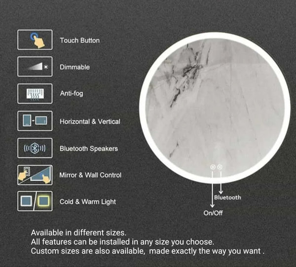 Upgrade your space with this smart LED Bluetooth circle mirror, designed to combine modern lighting with built-in audio convenience. Enjoy clear, shadow-free reflection while playing your favorite music, making daily grooming and makeup more enjoyable.