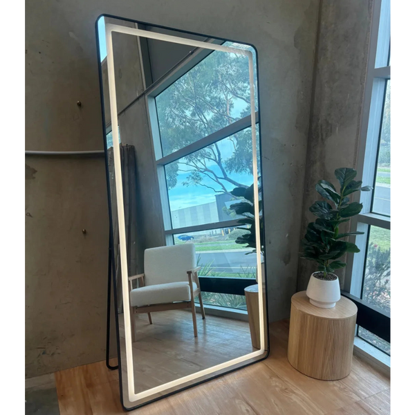 Upgrade your space with this stylish free-standing LED mirror with aluminium frame. Designed for flexibility, it can be placed anywhere in your home or salon, while the soft, even LED lighting provides a warm and flattering glow for dressing, makeup, or everyday grooming.